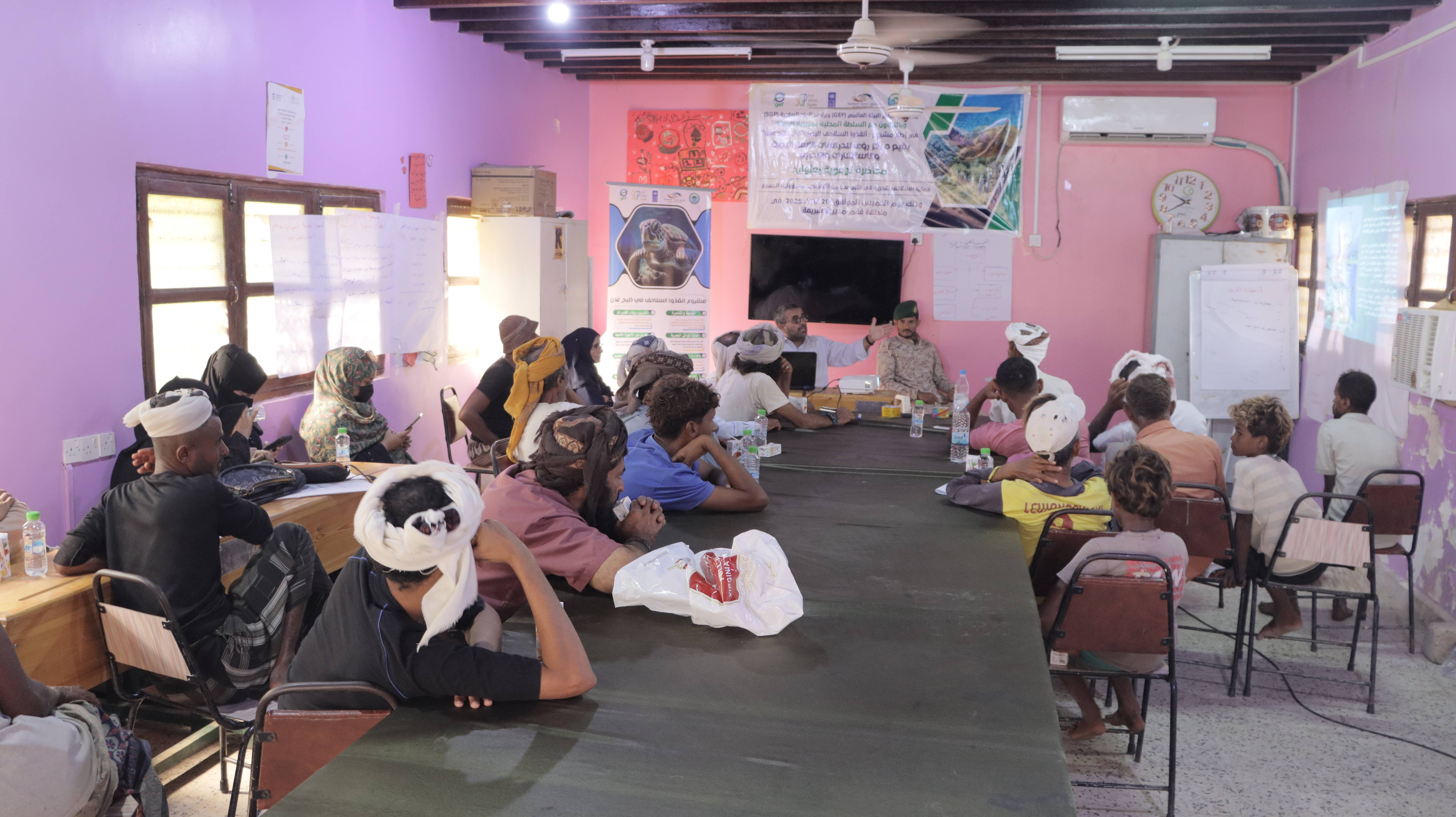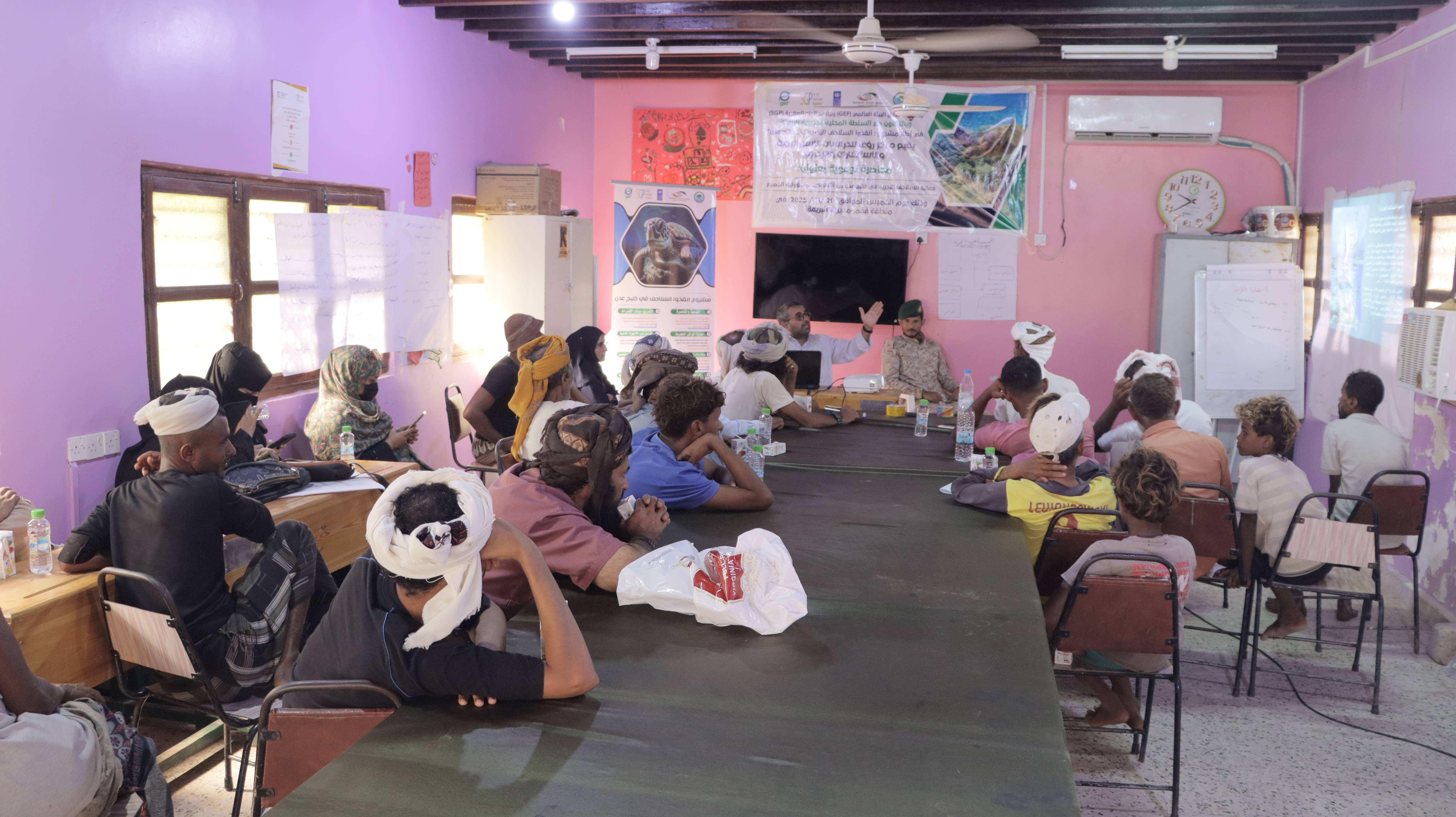 The lecture, conducted as part of the “Save the Marine Turtles in the Gulf of Aden” project, brought together a number of local fishermen with the aim of raising community awareness about their vital role in conserving marine turtles and reducing the risks threatening their survival.