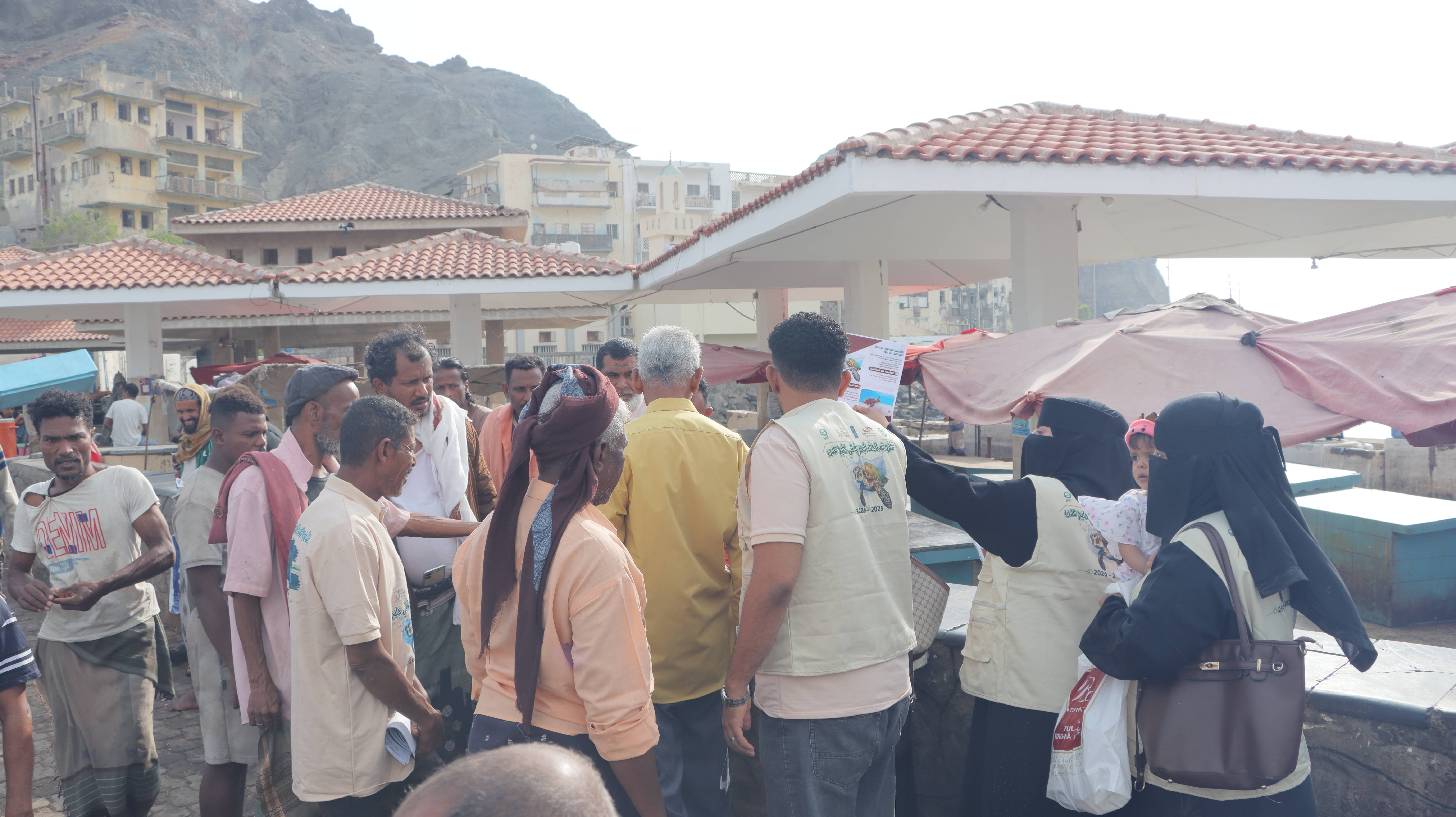 Ruaa Centre for Strategic Studies, Consultancy, and Training carried out a field awareness campaign on Thursday morning in the Seera Fish Market in Aden Governorate, as part of the activities of the “Save the Sea Turtles in the Gulf of Aden” project. The campaign aims to raise awareness among fishermen, vendors, and market visitors about the importance of protecting sea turtles and preventing their capture or trade.