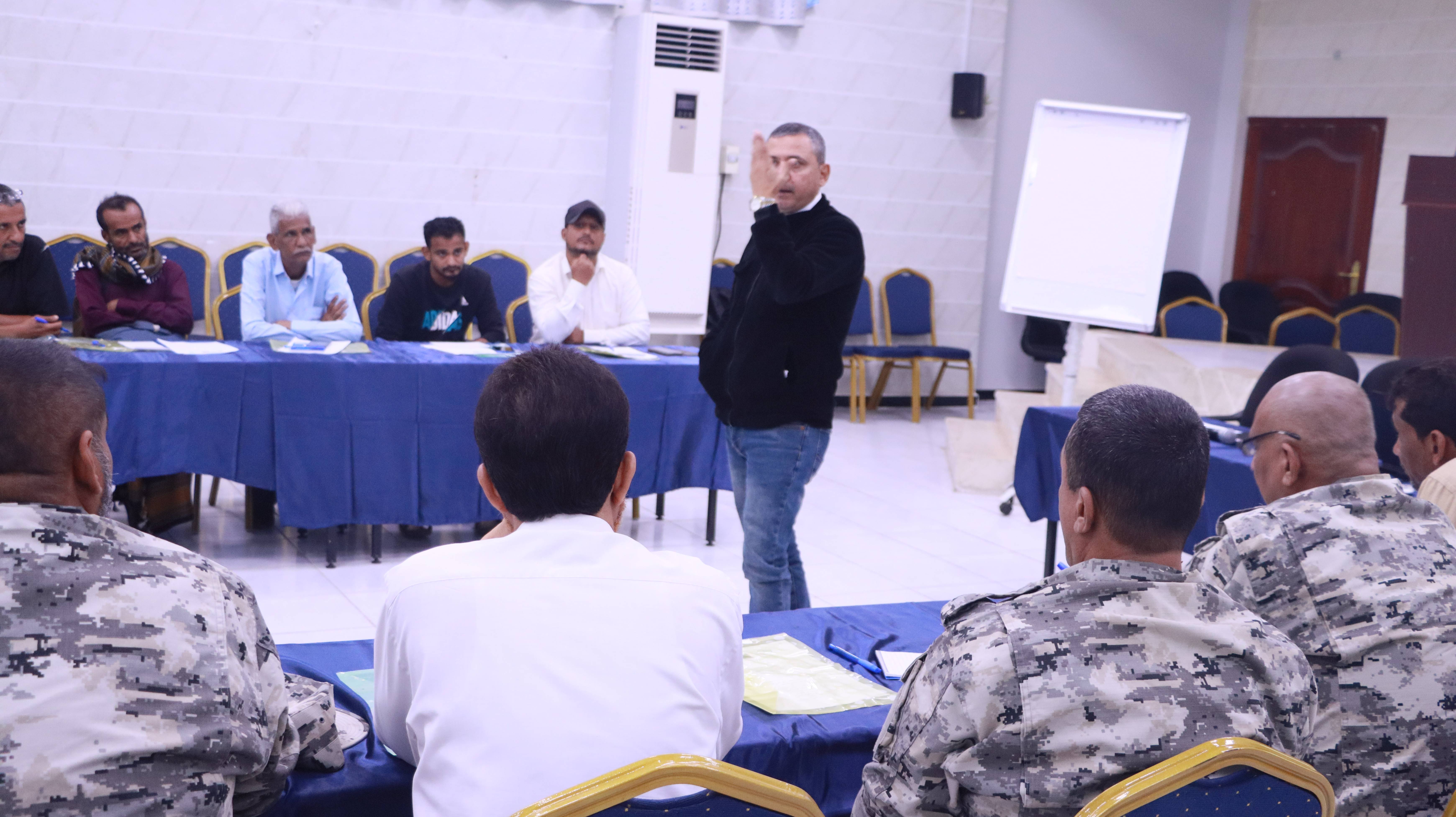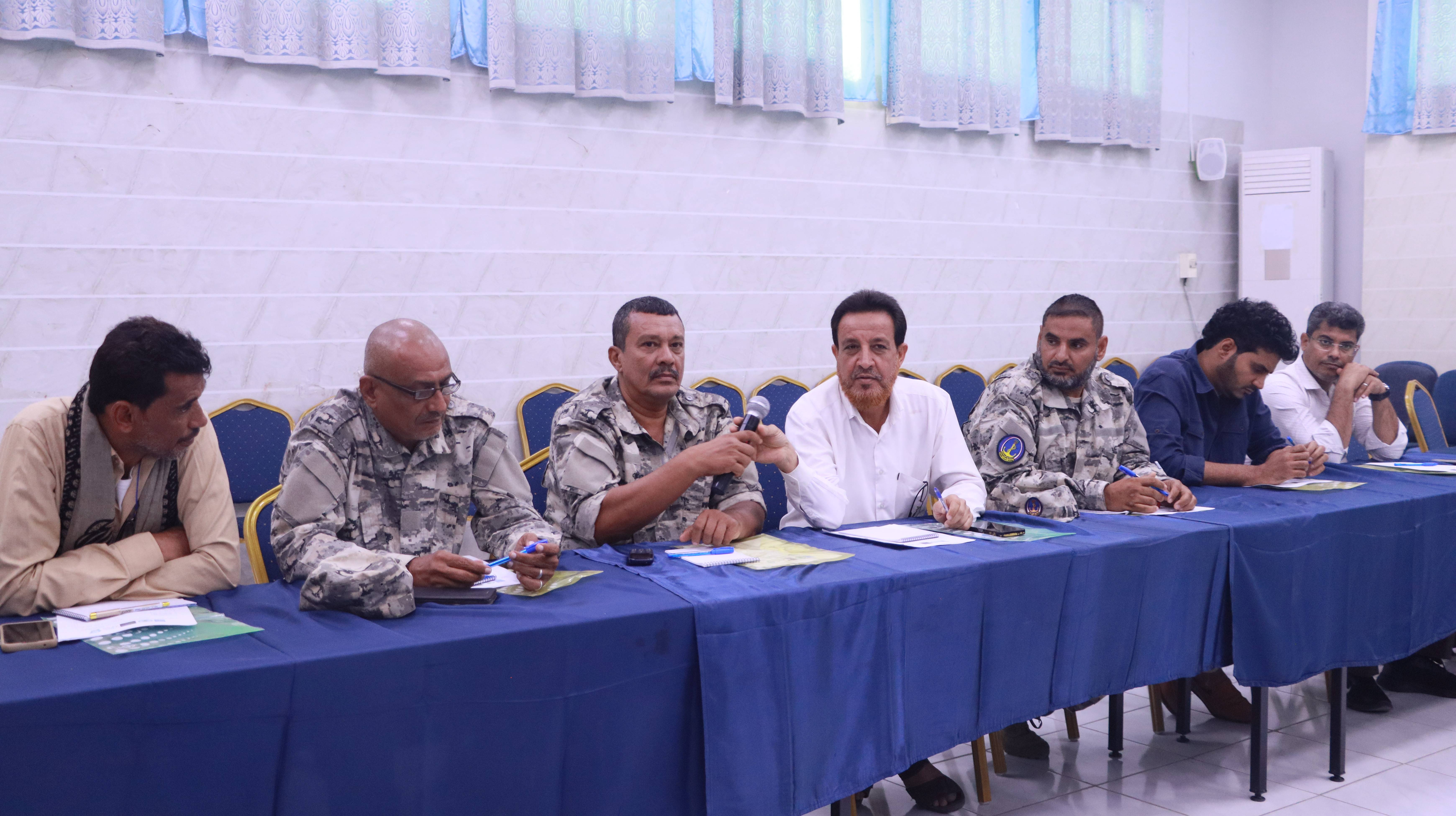 من جانبه، استعرض مدير مكتب الهيئة العامة لحماية البيئة بعدن، المهندس نيازي مصطفى، دور الهيئة في إنفاذ القوانين البيئية، مؤكداً أهمية رفع وعي رجال الأمن والعاملين في القطاعات ذات الصلة بالتشريعات المنظمة لحماية البيئة والحياة البحرية، بما يسهم في الحد من الانتهاكات والممارسات الضارة بالبيئة الساحلية والبحرية.