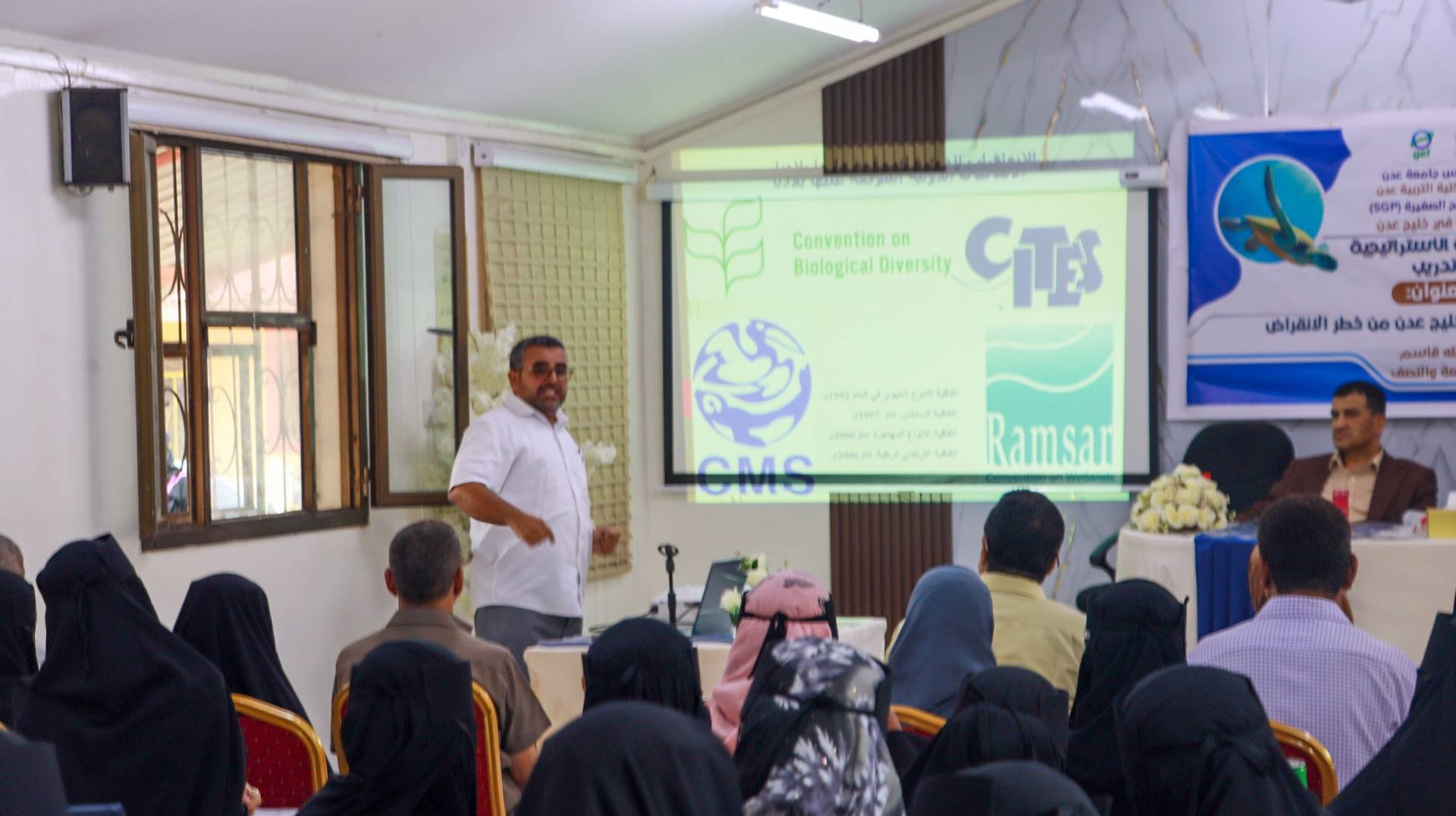 نظم مركز رؤى للدراسات الاستراتيجية والاستشارات والتدريب محاضرة توعوية بكلية التربية في جامعة عدن بعنوان: "كيف نحمي السلاحف البحرية في خليج عدن من خطر الانقراض"، وذلك ضمن مشروع "أنقذوا السلاحف البحرية في خليج عدن"، وبتمويل من مرفق البيئة العالمي (GEF) وبرنامج المنح الصغيرة (SGP)، بهدف تعزيز الوعي البيئي والحفاظ على التنوع الحيوي.