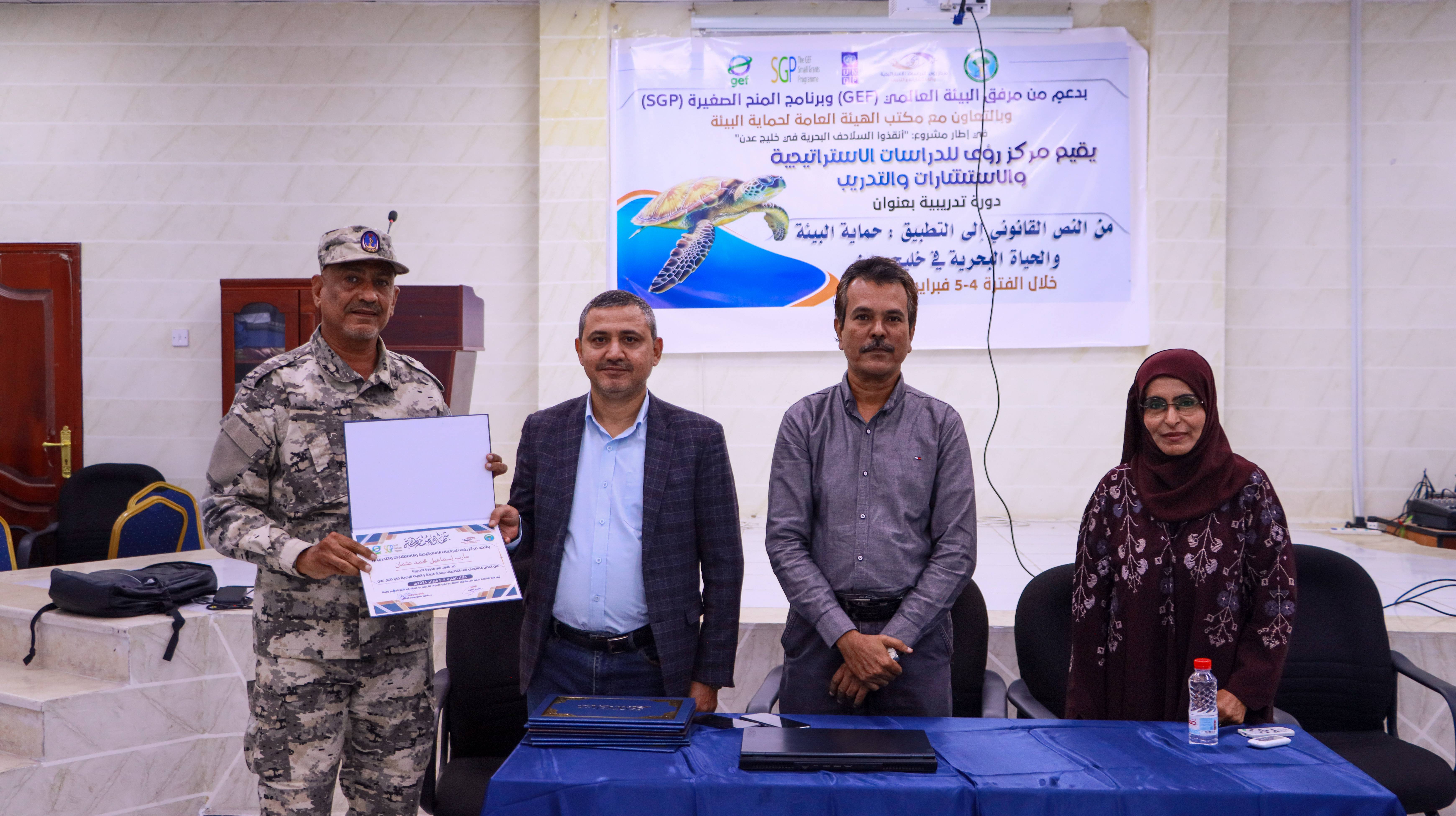 مركز رؤى يختتم دورة تدريبية حول تطبيق التشريعات القانونية لحماية الحياة البحرية في خليج عدن